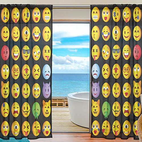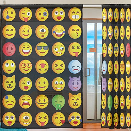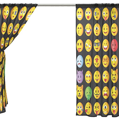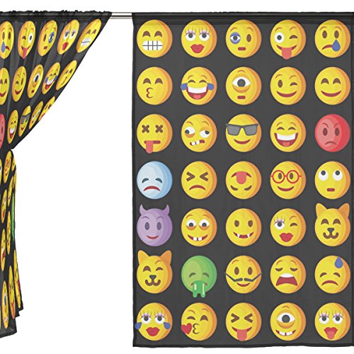 seulifeウィンドウ薄手カーテンドアキッチンリビングルームベッドルーム55 x 78インチ2の面白いかわいい絵文字絵文字ボイルカーテンドレープパネル 55"x 78" g2321182p112c126s167