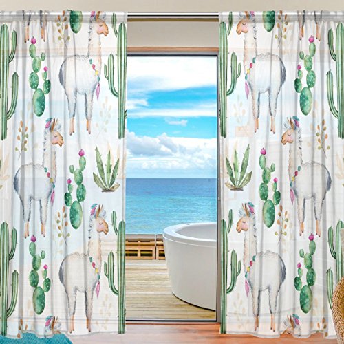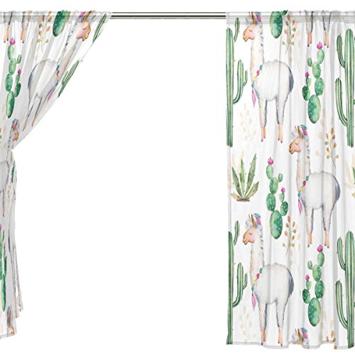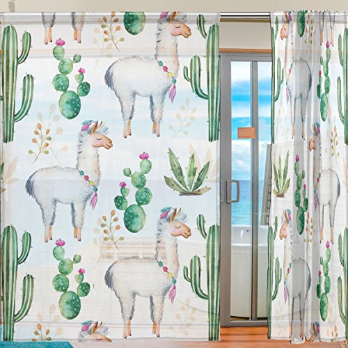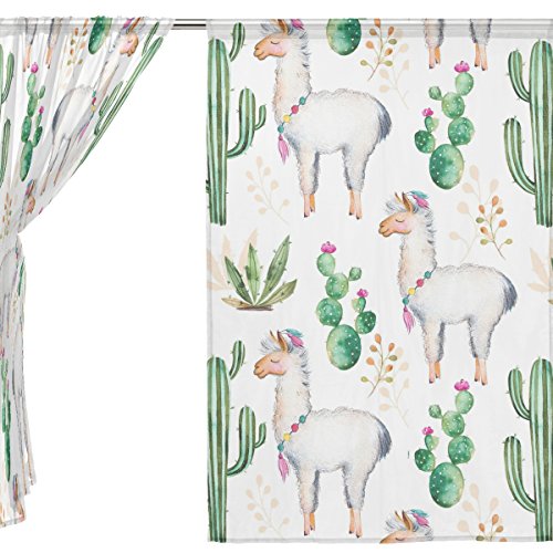 seulifeウィンドウ薄手カーテンドアキッチンリビングルームベッドルーム55 x 78インチ2の動物キャメルサボテンの花ボイルカーテンドレープパネル 55"x 84" g2519053p112c126s168