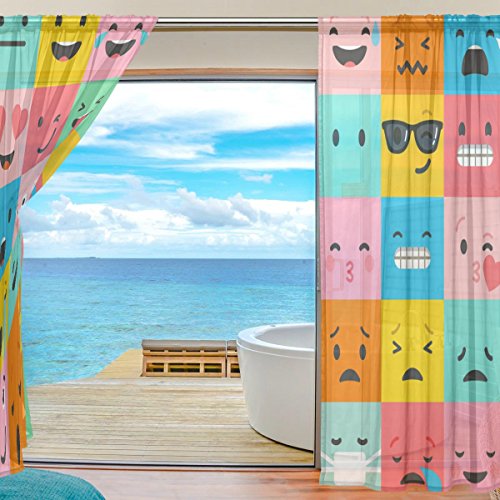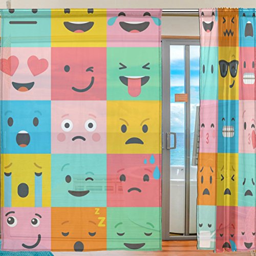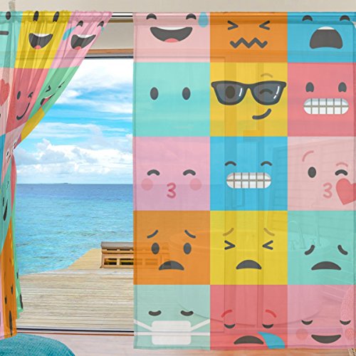 seulifeウィンドウ薄手カーテンかわいい絵文字絵文字Smiling Faceボイルカーテンドレープのドアキッチンリビングルームベッドルーム55 x 78インチ2パネル 55"x 78" g2720559p113c127s169