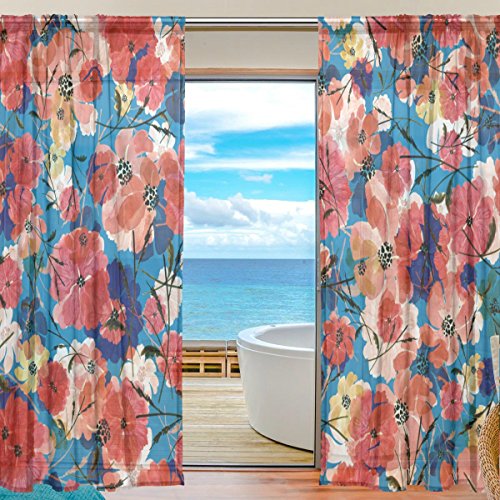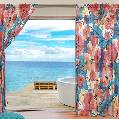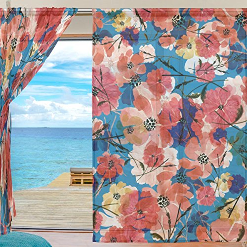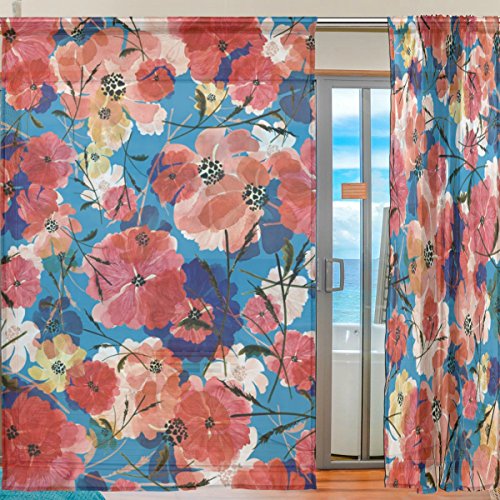seulifeウィンドウ薄手のカーテン、花柄花抽象アートボイルカーテンドレープドアキッチンリビングルームベッドルーム55 x 78インチ2パネル 55"x 84" g2958908p113c127s170