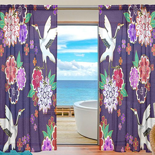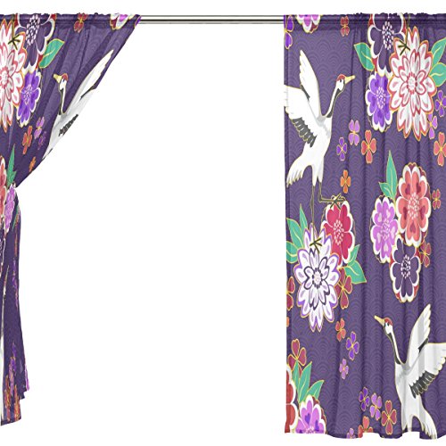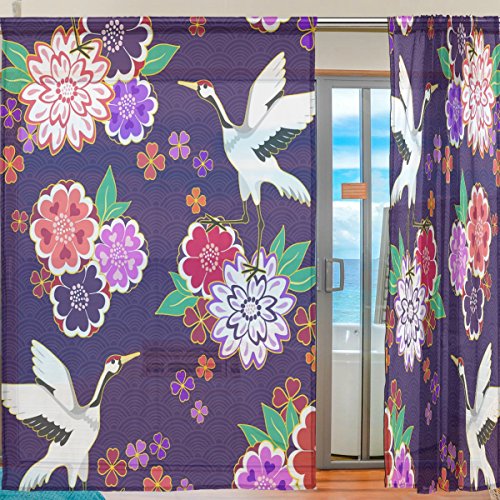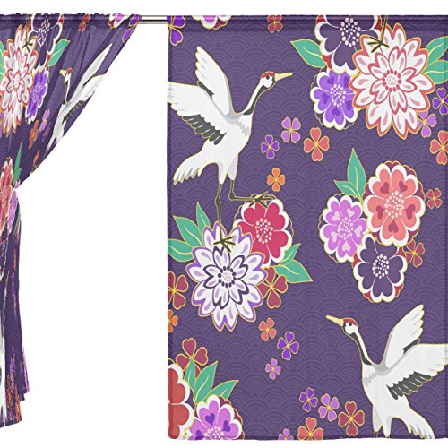 seulifeウィンドウ薄手のカーテン、日本Japanese Crane花ボイルカーテンドレープのドアキッチンリビングルームベッドルーム55 x 78インチ2パネル 55"x 84" g3064764p112c126s168