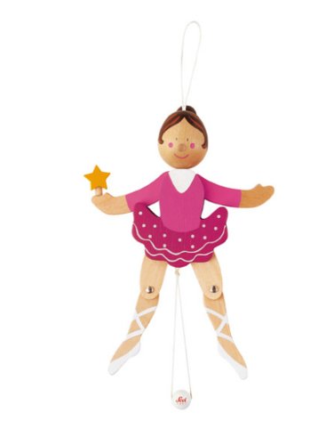 - バギーなどにつけて紐を引っ張ると踊りだします。また、木と木がぶつかりあって、自然なカチャカチャという音が素敵なおもちゃです。