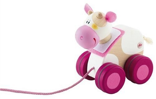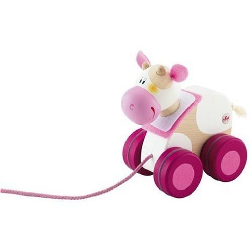 Take your cow for a walk. Small in size but big in charm, this adorable wooden pull toy from Sevi rocks along sounding a gentle bell safely concealed inside.