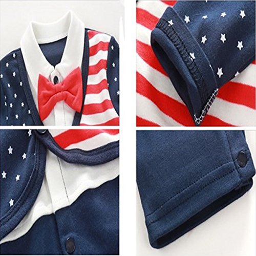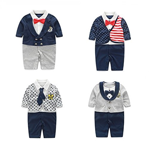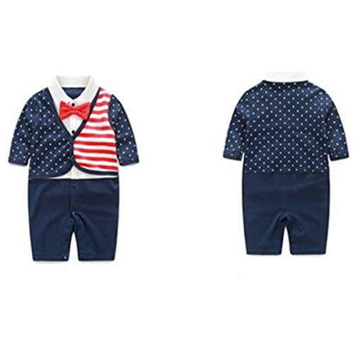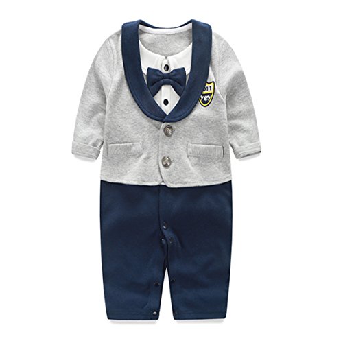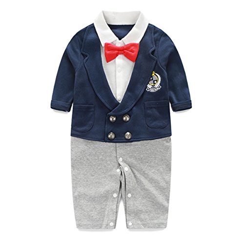 - シャツ&パンツを着ているような一体型ロンパース。かわいいスーツ風ロンパース カバーオール。ブレザーに蝶ネクタイで素敵なジェントルマンです。