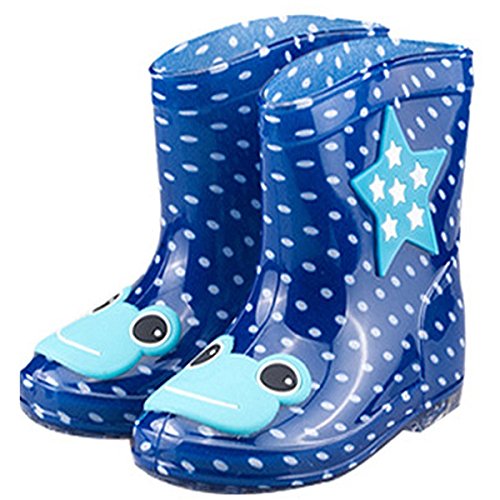 SF 可愛いキッズ用レインブーツ 子供 子ども用 雨靴 梅雨対抗 ながぐつ レインシューズ ボーイズシューズ レイングッズ 雨具 (内寸16cm, ブルードット)