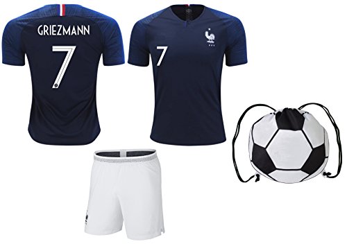 フランスGriezmann # 7サッカージャージー&ショーツキッズユースサイズフットボールワールドカッププレミアムギフト✓ボーナスサッカーバックパック YM 8-10 Years