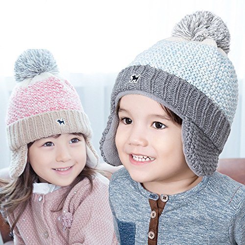 SFGHOUSE ニット帽 ニットハット 耳保護 ベビー 子供 キッズ 男の子・女の子 秋冬 防寒 防風 (ピンク)