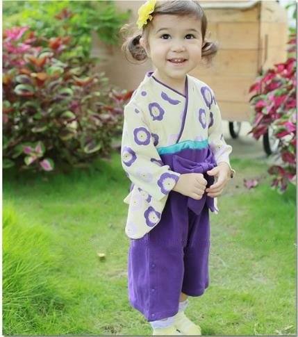 SFGHOUSE ロンパース ベビー和服 カバーオール 浴衣 着物 和装フォーマル 女の子 可愛い 高品質 綿 (90cm, パープル)