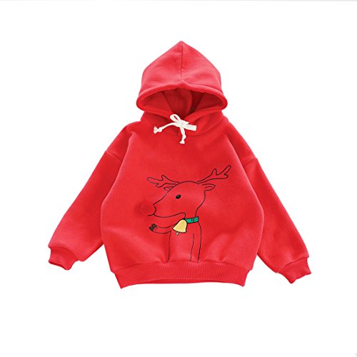 SFGHOUSE 子供服 パーカー スウェット クリスマス 男の子・女の子 秋冬 トナカイ コスチューム (80cm, レッド)