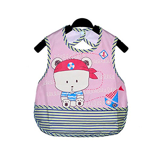 ベビー 食事エプロン よだれかけ 大サイズ アニメ柄 スナップ 4色 (ピンク)