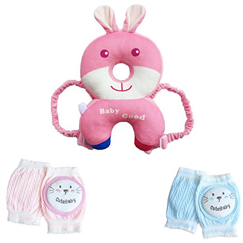 SHIHETIANYE 新型 赤ちゃんの頭を守る ベビー あたま ガード ひざ 保護 怪我防止3点セット 四季 メッシュ 通気 可愛い柄 男女兼用 お得安全セット 日本語取扱説明書あり (ピンクウサギセット)