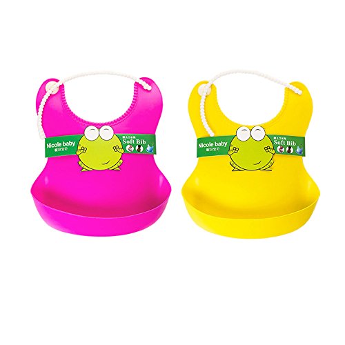 (SHINA)2点セット 赤ちゃん お食事 エプロン シリコンエプロン ポケット付き 防水 耐用 洗濯しやすい (黄色+バラ色)