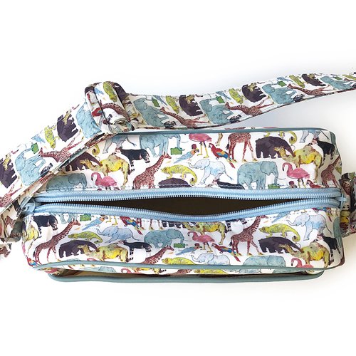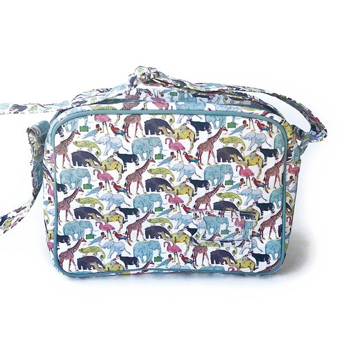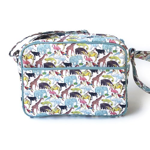 通園バッグ ショルダーバッグ 幼稚園バッグ:リバティ・キュー・フォー・ザ・ズー(ライトブルー) アクリル コーティング済み おしゃれ かわいい