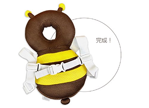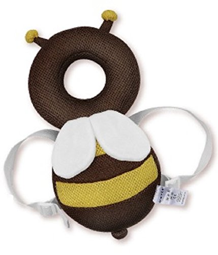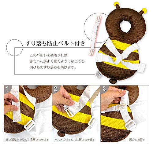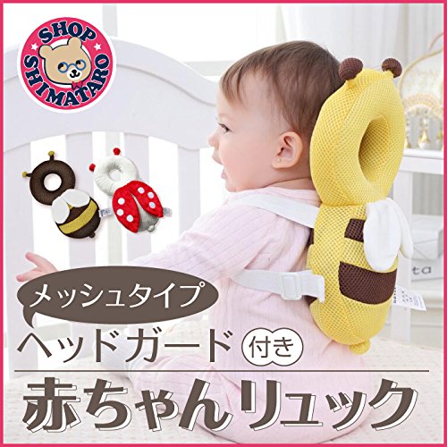 SHOP SHIMATARO メッシュ素材の夏仕様 赤ちゃんの頭を守る 滑り止めハーネスベルト付き ベビー ヘッドガード リュック キッズ 転倒防止 頭 グッズ 誕生日 0歳 1歳 出産祝い 女の子 男の子 ベビー用品 安全 かわいい クッション 保護 ベビー ヘルメット ギフト (ハチ(ブラウン))