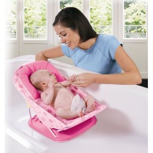 The Mother's Touch Baby Bather from Summer Infant cradles newborns in an effort to make bath time more calm and relaxed.