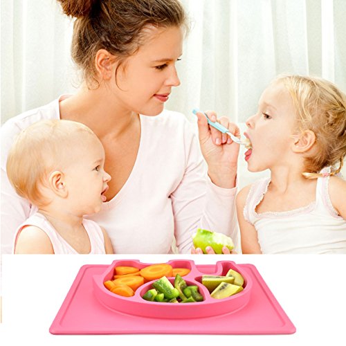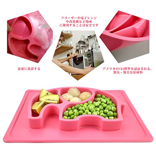 SILIVO食事プレート ボウルとマットの合体 離乳食 滑り止め 食べこぼし防止 テーブルとベビーチェア適用 25*19.5*2.5CM