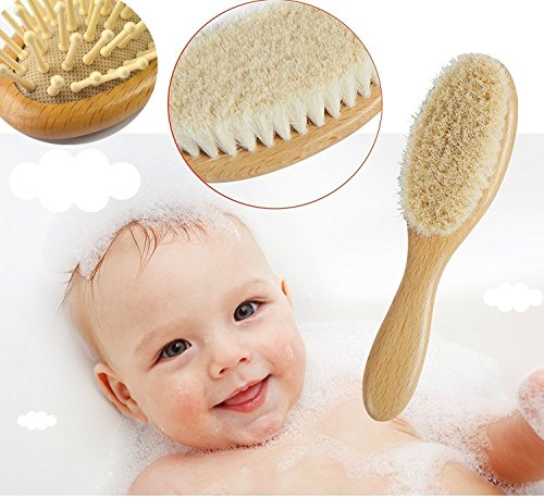 - 【ベビー用 ヘアブラシ&櫛セット】1×ヘアブラシ、1×櫛。新生児の頭皮はデリケート。沐浴後は肌も敏感になっていますので毛先が当たっても安心の優しい山羊毛をおすすめします。