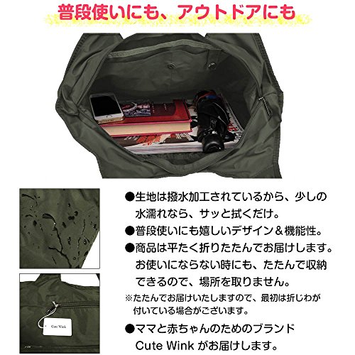 (キュート ウィンク) Cute Wink 超軽量 シンプル マザーズバッグ 大容量 撥水 充実の内ポケット 多目的 ショルダーバッグ カーキ