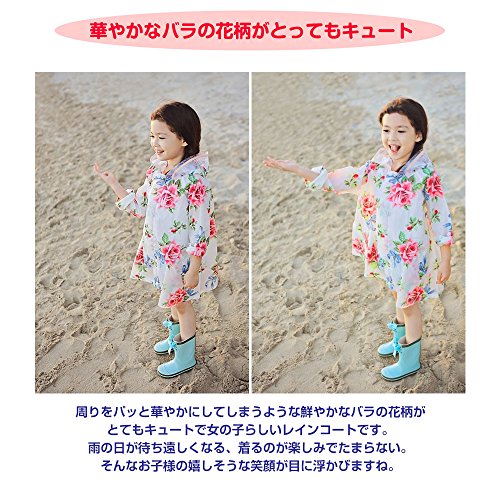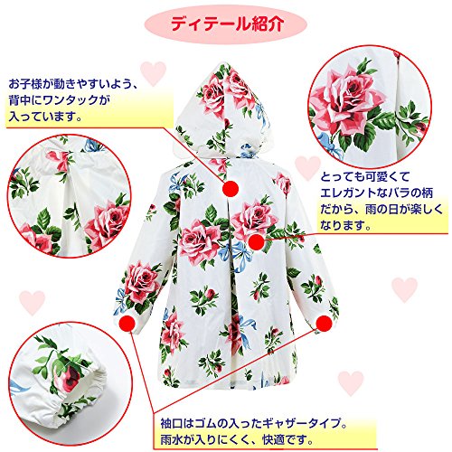- 可愛らしく、美しいバラの花柄の、女の子用レインコートです。雨の日もウキウキ楽しくなる素敵なデザインです。携帯用収納ポーチ付きでお出かけ時の持ち運びにも便利です。