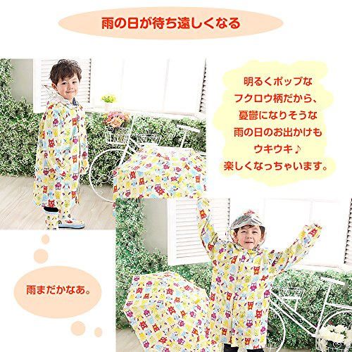 - 可愛らしいフクロウ柄の男女兼用レインコート。携帯用収納ポーチ付。