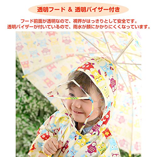 (キュート ウィンク) Cute Wink キッズ レインコート バイザー付 収納ポーチ付 カッパ フクロウ柄 L