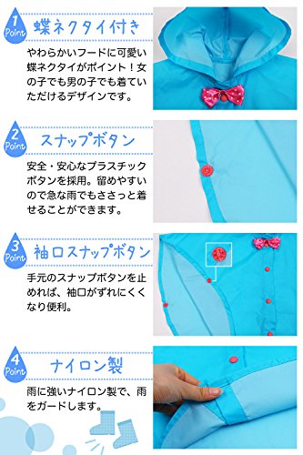 - 急な雨でもサッと羽織れるレインポンチョ。袖を通さなくてもいいのでママもラクチン。後からスナップボタンを留めるだけの簡単装着。