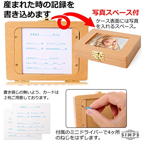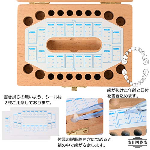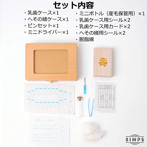 【SIMPS】 乳歯ケース 木製 プレミアムボックス 赤ちゃん用 記念 トゥースボックス 乳歯ボックス へその緒ケース 桐製 写真入れ 産まれた日カードと歯が抜けた日シール付き