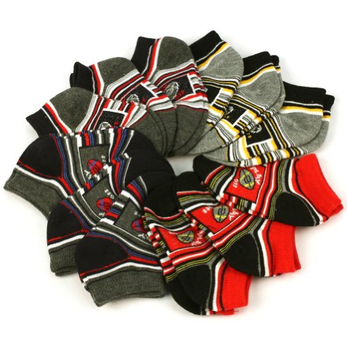 新しいベビー幼児新生児男の子の足首のローカット長カラフルストライプサッカー柄カジュアルソックス。伸縮性がありリブ編みで快適です。12ペア、すべて取り合わせのよう。素晴らしい品質が実現されています。