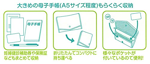 - 母子手帳を始め、妊婦検診補助券や健康保険証、ペンなどの持ち運びたい様々なものを収納できる