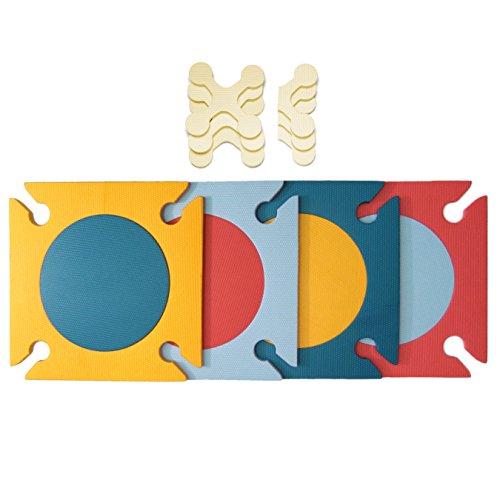 SKIP HOP PLAYSPOTはEVAフォームを使用した弾力性と安全性を兼ね備えたソフトな感触のプレイマットです。あらゆる年齢のお子様に対応しサイズも大きく、強い衝撃や振動を和らげてくれます。20枚のカラフルなタイルと36個のコネクターを使用しお好みのデザイン、形、大きさにできます。スタイリッシュなデザインがお部屋の装飾としても楽しめますのでNYのおしゃれなママ&パパにも人気の商品です。