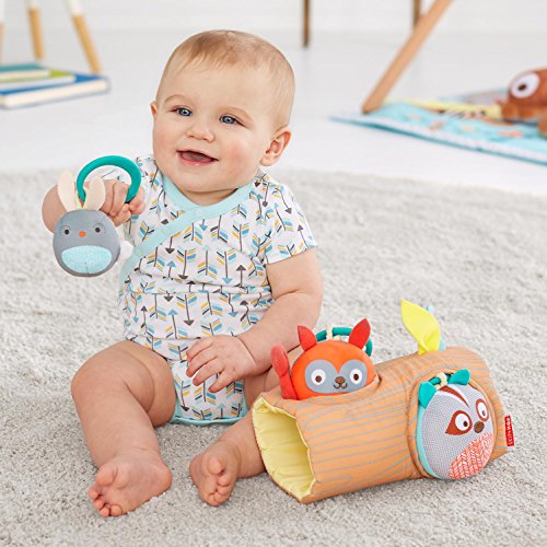・仲良しアライグマ、リス、ウサギのトリオが切り株にかくれんぼ。 ・リンリン、カラカラ、いろんな音が楽しめます。