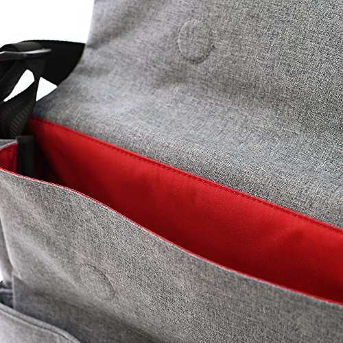 外側と内側には大小様々なポケットがついており、哺乳びんやスタイなど、外出時に必要な物を細かく分けて入れることが可能。