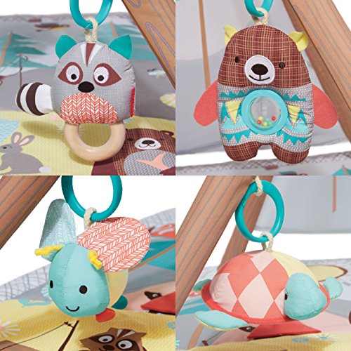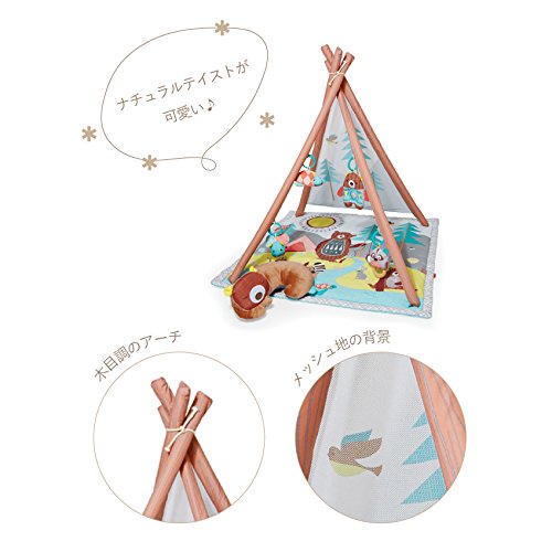 - ユニークな木目調のアーチにはおもちゃを取り付けられる8つのループ。