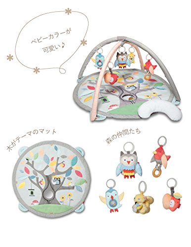 - 直径92cmの大きなマットには付属のおもちゃが5コ!ベビーカーにも取り付けられます。