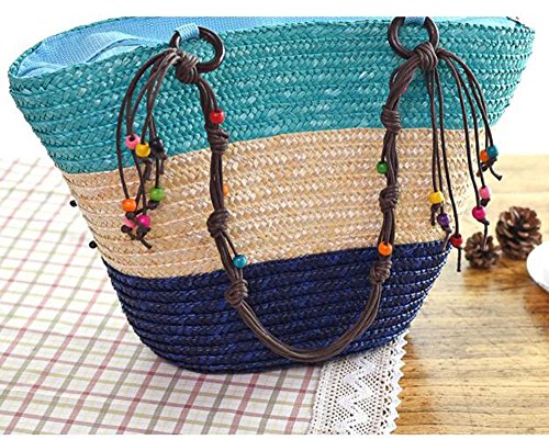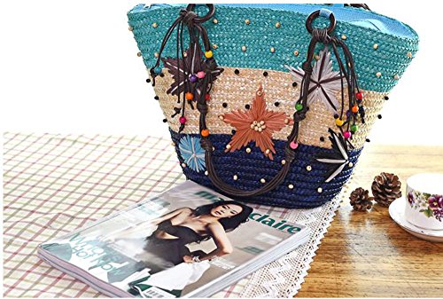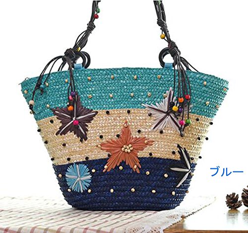 S'M(エスエム)ハンドバッグ手編み手提げかばんビーチバッグブルー