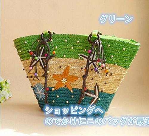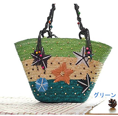 S'M(エスエム)ハンドバッグ手編み手提げかばんビーチバッググリーン