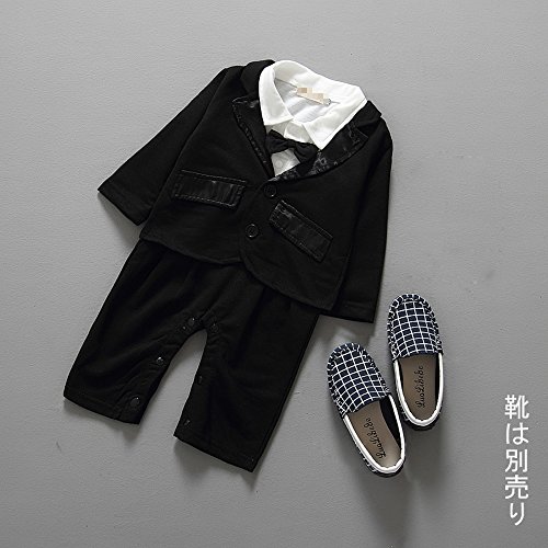 SM子供服 ボーイズスーツ男の子フォーマルスーツ コート ロンパース二点セット トップス シャツボトムスブラック 長袖 結婚式 卒園式 発表会 お祝いのプレゼントSM晴子の店 (95, ブラック蝶結び) [並行輸入品]