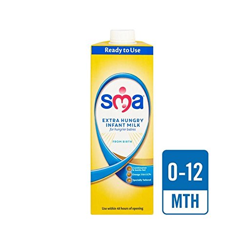 Sma余分な空腹乳児用ミルク液1リットル (SMA Nutrition) (x 4) - SMA Extra Hungry Infant Milk Liquid 1L (Pack of 4)