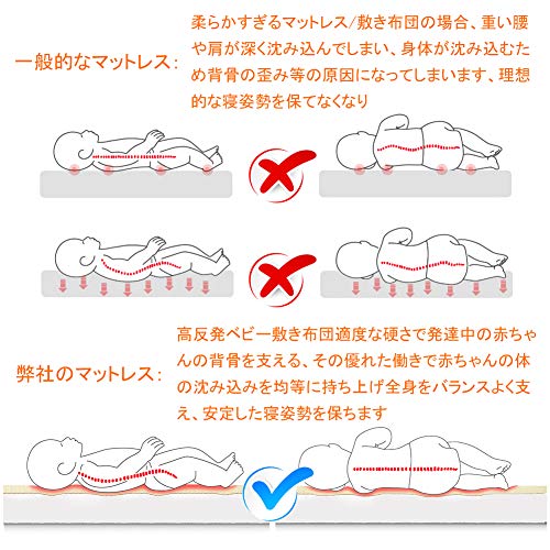 - 【上質のスポンジ、安心、快適】 高反発スポンジは快速に跳ね返り、マットレスは変形しにくく、身体を均一に持ち上げ、ストレスを分散させ、赤ちゃんが头部が沈んで窒息する危険を防止できます。