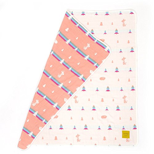 SMILEMOON ガーゼケット ベビー 6重 コットン 100% (SHEEP & GIRAFFE(羊ときりんピンク))
