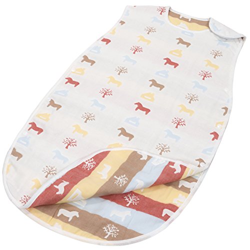 SMILEMOON スリーパー キッズ & ベビー コットン 100% 6重 ガーゼ 赤ちゃん 出産祝 (KIDS, TREE & HORSE(木と馬))
