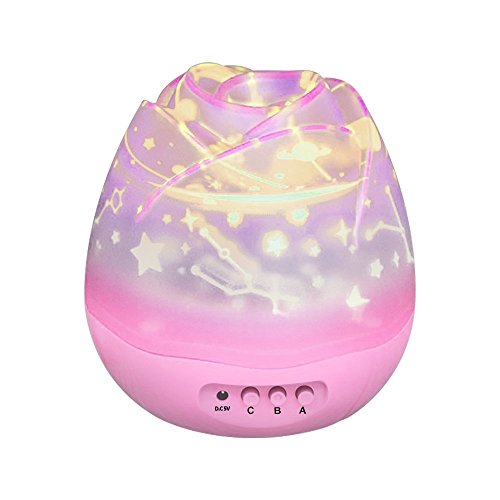 LED投影ランプ ランタン ベッドサイドランプ 夜間照明 ベッドルーム ベビールーム用 360度回転 8色変換 満点星空 投射装飾ライト プレゼント (pink)