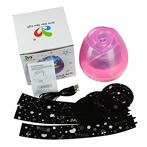 1、サイズ:12.5cm*12.5cm,パッケージ:12.7cm*12.7cm*12.5cm,電圧:5V,ホルダー素材:PVC,説明書:英文,電力:USBケーブルor#7乾電池 2、付属品:本体*1、USBケーブル*1、説明書*1、フィルム*3(注意:乾電池を付属しておりません) 3、フィルム図案:誕生祝い図案、星座図案、ロマンチック図案 4、フィルム装着ステップ: ①蓋を開ける ②フィルムを入れる ③蓋を締める 5、ボタン紹介説明:ボタンA:回転をコントロールする; ボタンB:灯光をコントロールする: ボタンC:ウォームライトをコントロールする