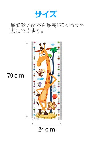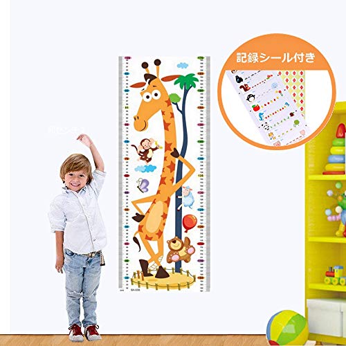 子供身長計 身長ウォールステッカー 身長計ステッカー 子供 キッズ 身長計 壁 記録シール付き (キリン)