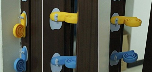 Size:6*3cm Material:Soft plastic Package Include: 5 pieces Directions for use: 1. Use 3 m tape stick on the door frame 2.Snail can rotate 360 degrees 3.Installed on the top of the door where the baby could not touch it