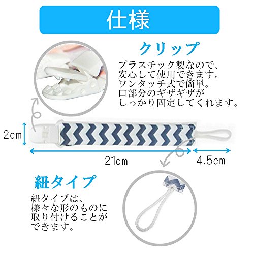 - 【紐 / クリップ】先端が紐タイプなので、おしゃぶりやおもちゃなどの小さい穴に通してご使用いただけます。クリップは、裏に凹凸があり、しっかり留めます。また、赤ちゃんが外しにくい構造になっていて、取り外されて落下する心配がありません。