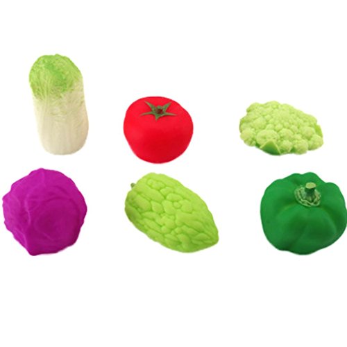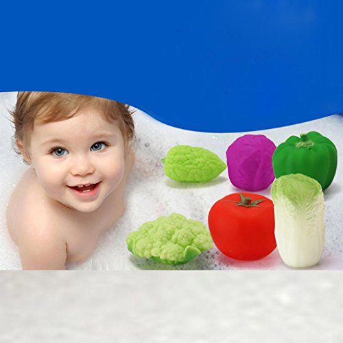 - 6 Pcs lovely Vegetables toys , they can float on water and sound when you sqeeze their body, funny and lovely, let your baby love bathing