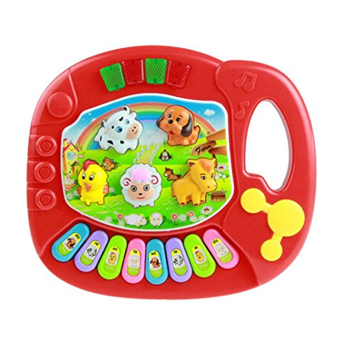 Feature: 100% brand new and high quality. Quantity: 1 The bottom has eight music key: do re mi fa so la si do, can according to the music. The first key to conversion: it will ask what is the sheep or birds, horses, cattle, and so on, if you press the corresponding animal it will say: right, good, if you press the wrong, it will say: wrong, then look for, at the same time have music accompaniment. The second key to conversion: no matter which animals you press, corresponding Chinese name and animal calls will appear. The third key to conversion: different animal will have different music songs. The fifth key to conversion: Hint sound "DO RE MI" will ring, then the baby can play music belong to himself. Note: The key of the heart shaped is conversion The babies under three years old aren't recommended Package Content: 1X Baby Kids Musical Educational Animal Farm Piano Developmen
