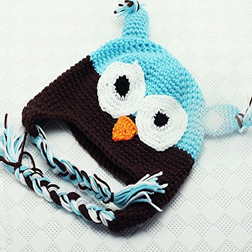 SODIAL(R) 可愛い手作りのフクロウニット帽子キャップライトブルーとコーヒー色