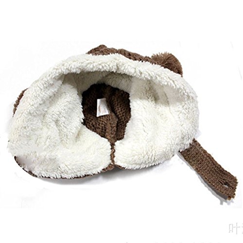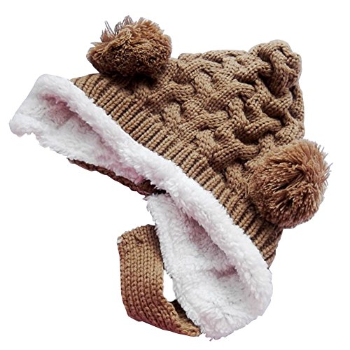 ベビーキャップ – SODIAL ( R )ベビー男の子女の子ニットかぎ針編みリブポンポン付き冬帽子キャップ暖かい冬(ブラウン)